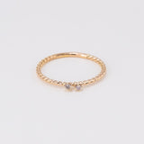 ツイスト模様のバンドにピンクメレダイヤモンドが2粒プロングセットで乗っています。