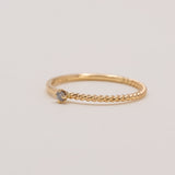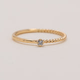 つぼみをイメージしたブルーグレーのダイヤモンドのリング。
