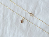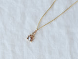 さくらんぼのような赤いインクルージョンが透明に浮かぶ可愛らしいナチュラルダイヤモンドのネックレス。