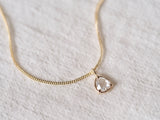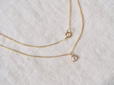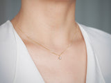 繊細なチェーンはデコルテラインに沿って流れるような印象に。