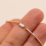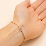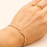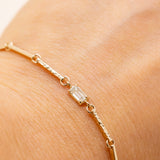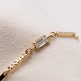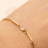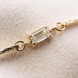 タイムレスに愛でられる、エメラルドカットダイヤモンドを一石留めたバーブレスレット。