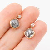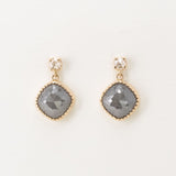 大粒のチャコールグレーダイヤモンドと透明のローズカットダイヤモンドを合わせたエレガントなドロップピアス。
