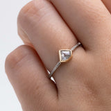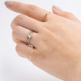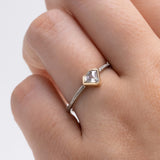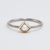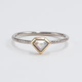 しっとりした存在感の石と呼吸を合わせるよう、リングアームには14KWGの素材を使用しました。