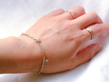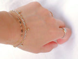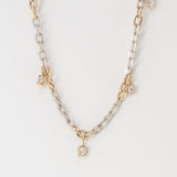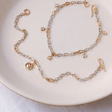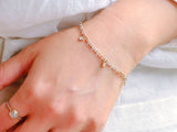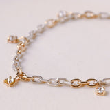 ゴールドとシルバーのミックスメタルチェーンにナチュラルダイヤが揺れるブレスレット。