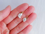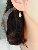 パールのニュアンスのある色合いに、どれが似合うかなぁ〜とじっくり選んで組み合わせました。ダイヤも形や色がそれぞれ個性的になっています。また一粒一粒ダイヤモンドに合わせて手作りで枠を作り小さなチャームに仕上げています。可愛らしいチャームが揺れるのもまた気持ちをうきうきさせてくれそう。