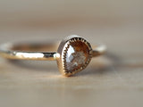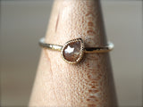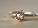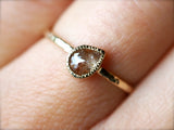 アンティークのような雰囲気で石周りにはテクスチャーを刻み、ころんとななめのセッティング。