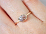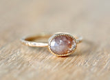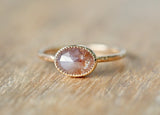 スモーキーなピンクグレーと赤が混じる透明のユニークでオーガニックなダイヤモンド。