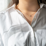 ミニマムな雰囲気の3点留めのネックレス。両吊なので長さの違うネックレスと重ね付けもしやすいです。
