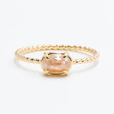手作りの繊細なプロングセットと、ツイストバンドもポイント。