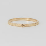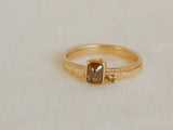 手作業で一本一本細かくギザギザテクスチャーを加えたスクエアバンドにシャンパンカラーのメレダイヤモンドがプロングセットで乗っています。