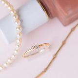 1つだけつけても可愛らしく、また他のダイヤモンドリングとの重ね付けにもぴったりです。