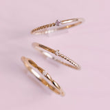 1つだけつけてもいいですし、他のダイヤモンドリングとの重ね付けにもぴったり。