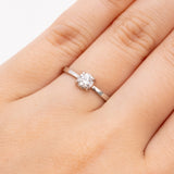 ふんわり羽を広げた蝶のように、センターのダイヤモンドから流れるように広がるアームが特徴のバタフライリング。