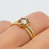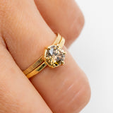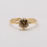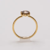 1カラットを超える石のサイズ、豊かな個性を最大限に活かすよう18KYGの手作りのプロングで丁寧にカスタムにて仕立てたスペシャルなリング。