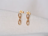 オーバルの輪を繋げた手作りのチェーンピアス。
