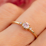 ダイヤモンド 中石直径約3.5mm 約0.19ct ピンク/脇石直径約1.5mm 2pc=0.02ct ピンク