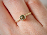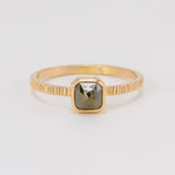 シックな雰囲気のスクエアダイヤモンドとスクエアバンドには一本一本手作業で刻んだテクスチャー。