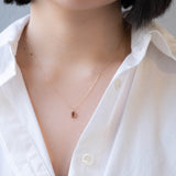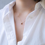 甘いキャラメルのような艶やかで深みのあるレッドブラウンのナチュラルダイヤモンドネックレス。素肌の上にも、お洋服の上にも暖かみがあり、どこかアンティークな印象。