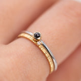 ブラックローズカットダイヤを使用したミックスメタルリング。