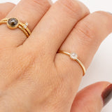 重ね付けしても一本でも素敵なタイムレスなダイヤモンドリングです。