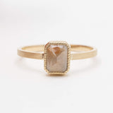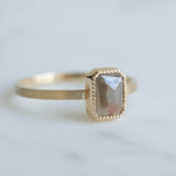 ミルキーグレーの中にピンクのインクルージョンが混じるナチュラルダイヤモンドリング。
