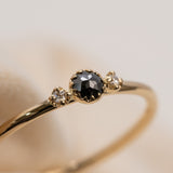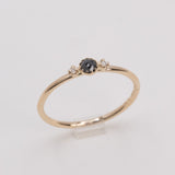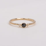 ダイヤモンド 中石直径約3mm ナチュラルブラック/ 脇石直径約1.3mm 2pc=0.02ct ホワイト