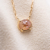 ストロベリーのようなピンク色のナチュラルダイヤモンドのネックレス。